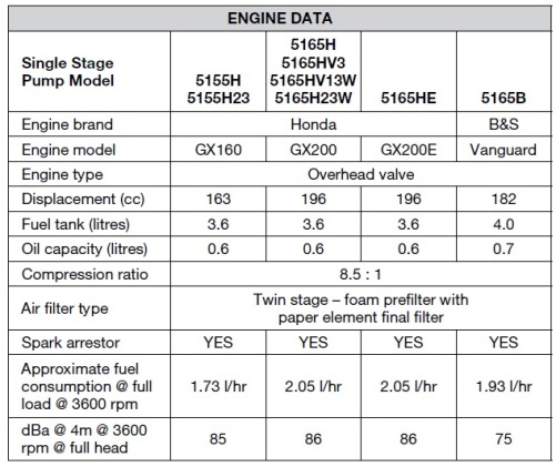 The Davey 5155H Firefighter is a single impeller pump powered by a Honda GX160 5.5 HP petrol engine. The Honda GX160 is a pull start 4 stroke OHV 163 cc engine reknown for its rugged economical reliability. The Honda engine is also fitted with an automatic oil level cut out which will stop the engine and/or prevent starting when the oil level is low or when the engine is tilted.