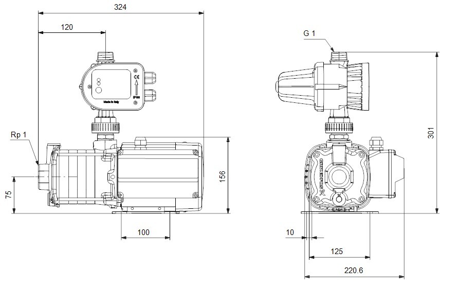 The Grundfos CMB 1-36 is a multistage pressure pump of stainless steel and cast iron construction of all wetted parts. This pump is suitable for small single storey cottages or weekenders with above ground tanks. The CMB 1-36 is fitted with a PM Start pressure controller which allows the pump to start and stop automatically according to demand and will also protect the pump by turning it off if your tank has run out of water. If you have an application where the house is more than single storey or there is 3 metres or more of vertical lift from the pump to the house a Grundfos CMB-SP would be a better choice.