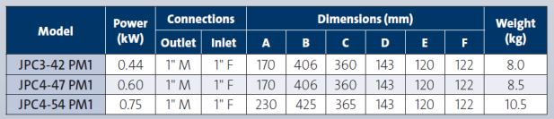 The Grundfos JPC 3-42 PM1 is no longer manufactured by Grundfos and has been replaced by the JP 3-42 PM1.